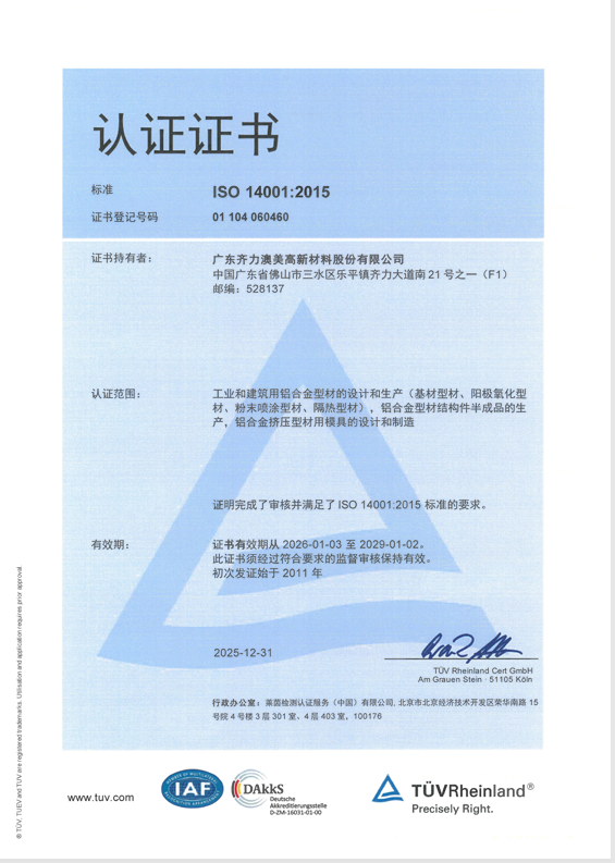 QUALICOAT證書(噴涂戶外產品歐標認證)
